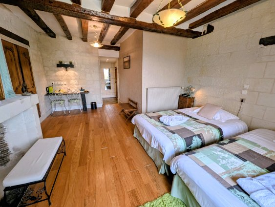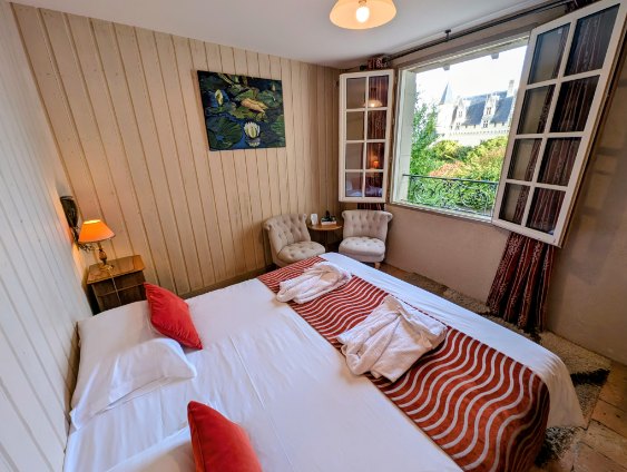 Découvrez nos chambres avec vue sur la Loire, parfaites pour accueillir amis et famille dans un cadre chaleureux. Chaque chambre est pensée pour allier confort, charme et praticité afin que votre séjour à Montsoreau soit inoubliable.